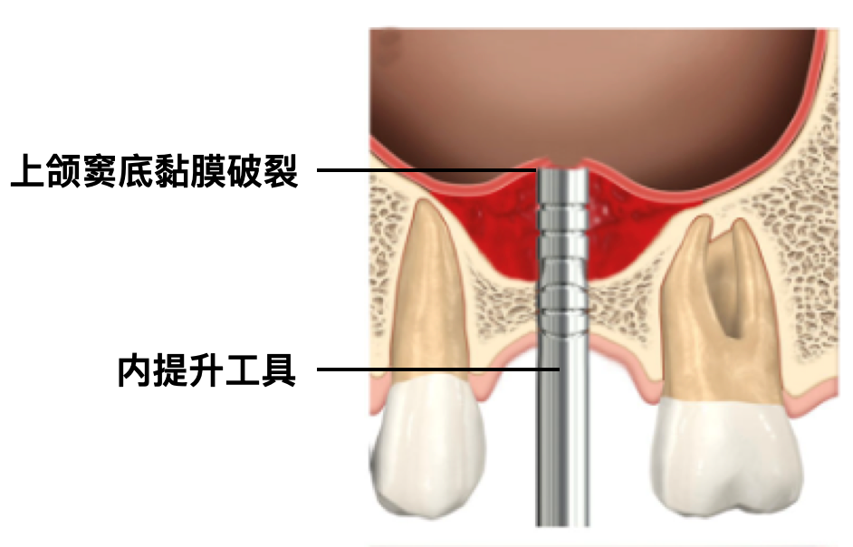 这个时候若是像上次讲到的那样进行上颌窦内提升,一是内提升的成骨量有限,难以为种植体提供长期稳定固位;二是由于内提升工具的局限性,若使用它进行较大范围抬高上颌窦底黏膜,则有可能造成黏膜穿孔、撕裂等并发症。