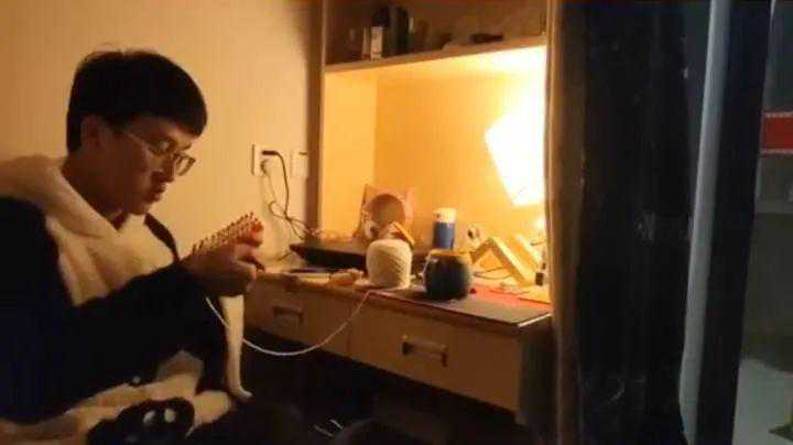 “我们班只有我们五个男生,一直受女生们的关照,所以想着新年到了,送她们一个礼物。”亲手织围巾送给女生们,是陈泽镕的主意。他说:“我们每天要早起练早功,晚上还要练形体、排小品,早出晚归,在路上特别冷。围巾其实挺实用的,太阳缺席的温暖就由我们来守护吧!”
