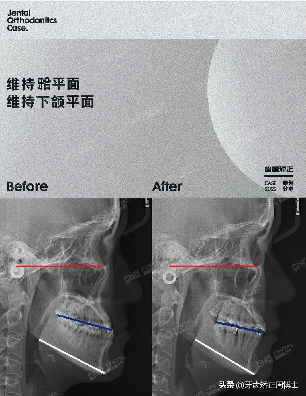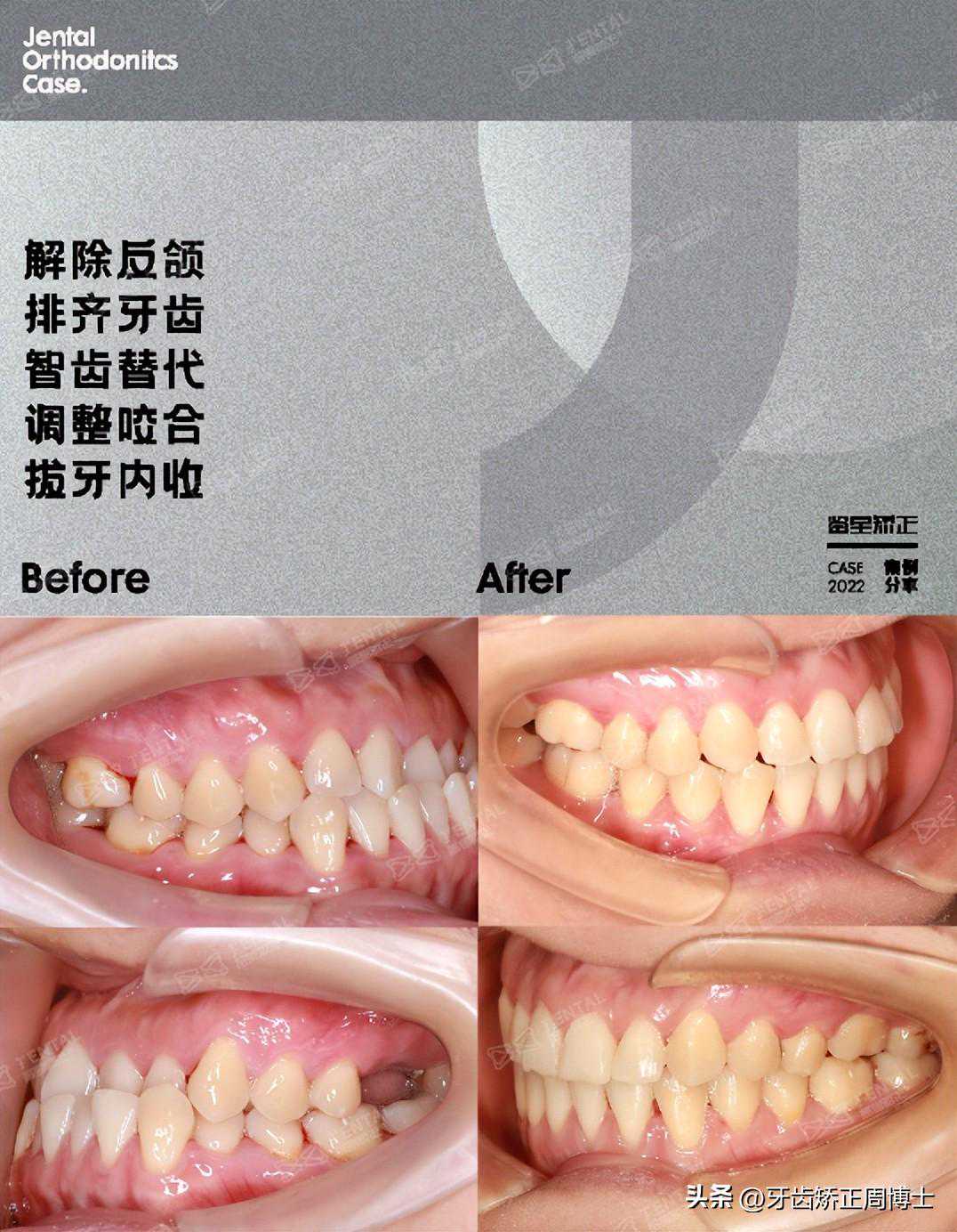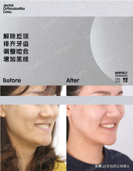 矫正结束后,我们解除了前牙反颌、深覆合的同时,还保留了健康的智齿,牙齿每颗都有咬合。美观和健康兼顾,还省去了种植牙的费用。4颗支抗钉促进下颌发生顺时针旋转,面下三分之一的高度增加,凹面型变成直面型,脸型有很明显的改善。