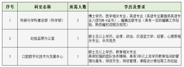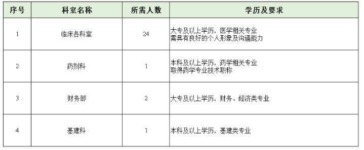 根据我院学科发展规划,现面向社会公开招聘各岗位,招聘对象为普通高等院校相关专业应、往届毕业生,具体招聘岗位及要求详见表格。