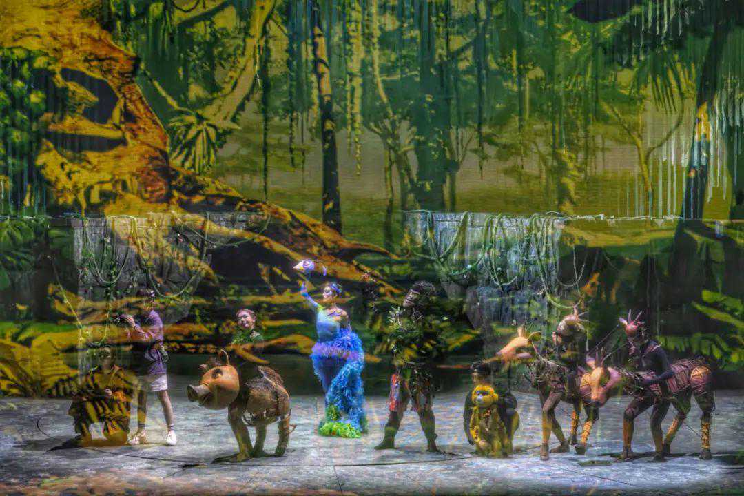 为了完美还原真实的热带雨林与动物生态,《自由行走的大象》的制偶师首次取用纯天然的材料——藤条作为主角木偶象的核心骨架,经过多重复杂工序,将野生大象一比一还原于舞台之上,让木偶完美地与“热带雨林”融为一体,而小象、瓜皮猪等小动物则用人偶结合的形式,让演员与木偶同台表演,这也为观众在“拟人”与“童话”的舞台视觉中找到一个较好的平衡点。