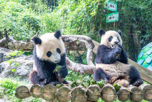 在长隆野生动物世界,园方采取限流30%客流的方式,控制入园人数,防止游客过度集中。记者看到,园内各处都贴上了防疫防护的宣传标语,要求游客和工作人员随时随地都要注意个人卫生,戴上口罩。园内的端午欢乐气氛不减,适逢端午节,饲养员们还别出心裁为动物们特制了与“粽”不同的粽子,为动物们过端午节。大熊猫“隆仔”和“婷仔”的粽子里,主要是竹笋和嫩竹叶。全媒体巡城记者在熊猫村巨竹林看到有趣的一幕,自一岁半断奶后就一起长大,至今快两岁的“隆仔”和“婷仔”一开始为了争食粽子攀爬栖架互不相让,谁都抢不到。“隆仔”退而求其次改道从爬梯爬上,捷足先登,而“婷仔”最终几经波折爬上放着粽子的栖架上,终于分到“一杯羹”,兄弟俩最终其乐融融,一起品尝美味的粽子。
