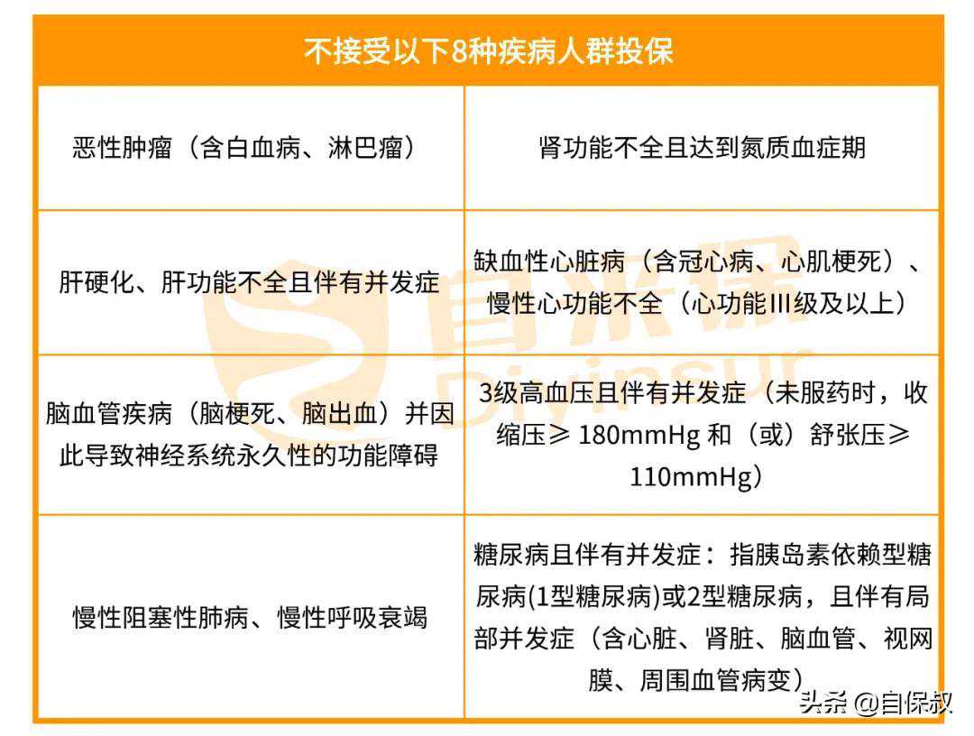 而深圳的专属团体医疗险,明确表示,有以下8种疾病不能参保(见图):