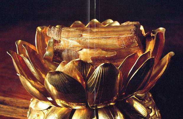 莲花座上托着的就是佛牙舍利