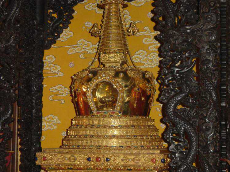 之所以佛牙舍利弥足珍贵,传说中佛祖释迦摩尼去世时在人间留下八万多颗舍利,但佛牙舍利只有两颗,一颗在遥远的斯里兰卡,常年用铁函封存;另一颗就是在八大处的佛牙塔里,当年周总理特批,借调出故宫博物院乾隆专门为母亲理佛打造的金塔,用来存放佛牙。(这塔借用了几十年,据说近来就要还给故宫了)如今人们可以透过金塔的玻璃罩,看到佛牙舍利。所以说,这也是世间可以方便人们用肉眼瞻观的仅存的一颗佛牙舍利。