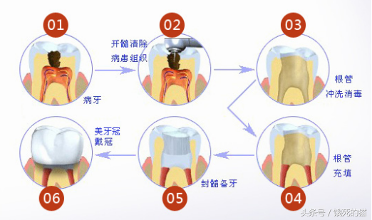 牙髓炎(伤及牙神经)—剧烈疼痛---根管治疗+补牙+冠修复