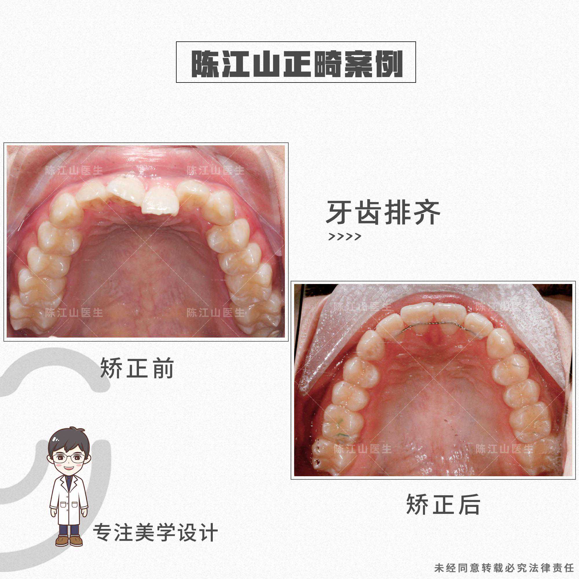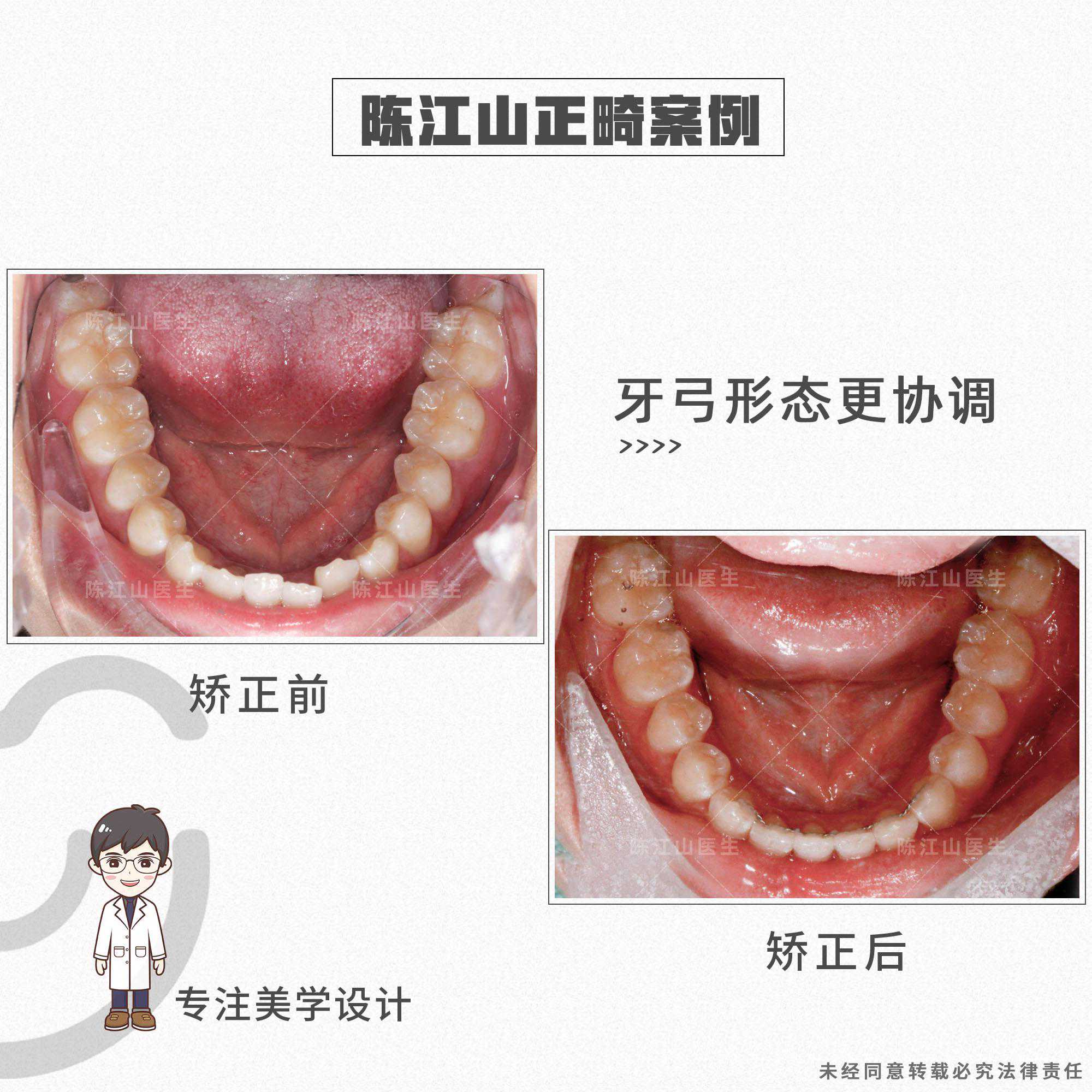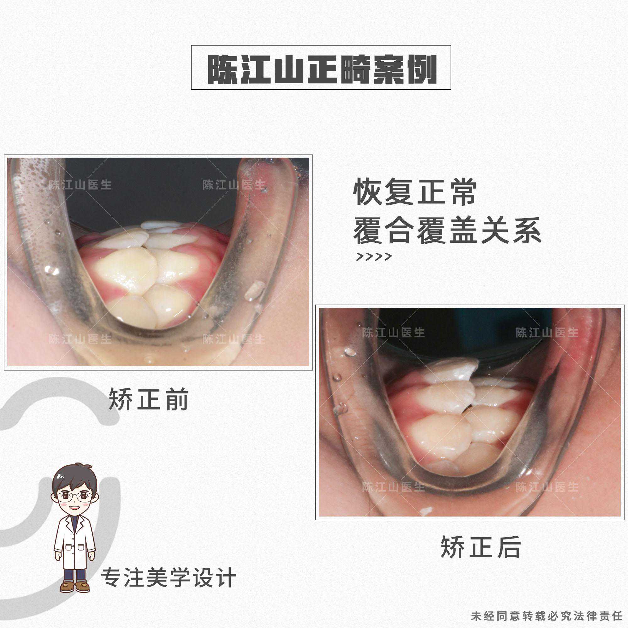 患者的矫正方案是不拔牙,关键在于调整地包天的过程中,要升高后牙高度,让颌平面出现顺时针旋转,下巴颏向下、向后走,改善地包天面型、面下1/3短以及下颌角宽的问题。