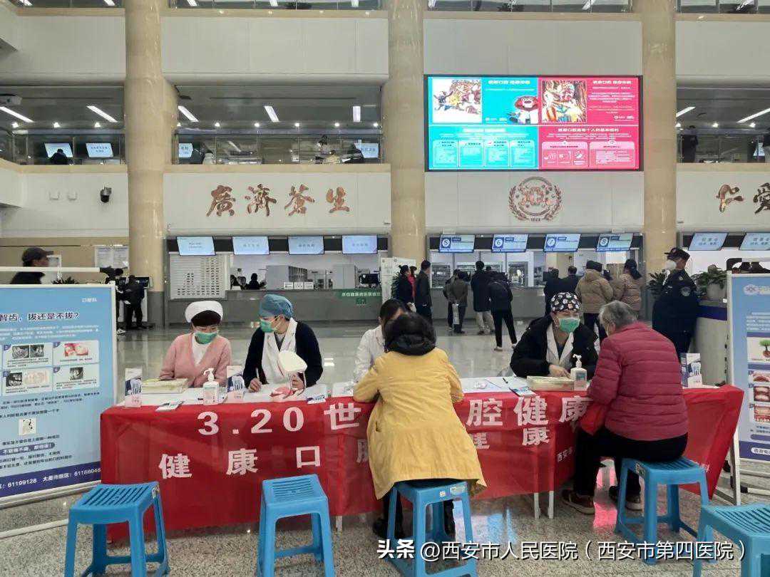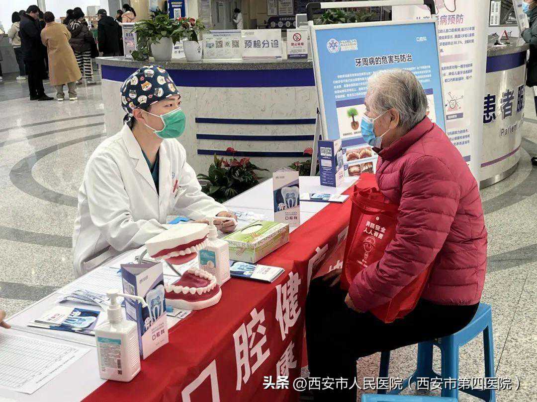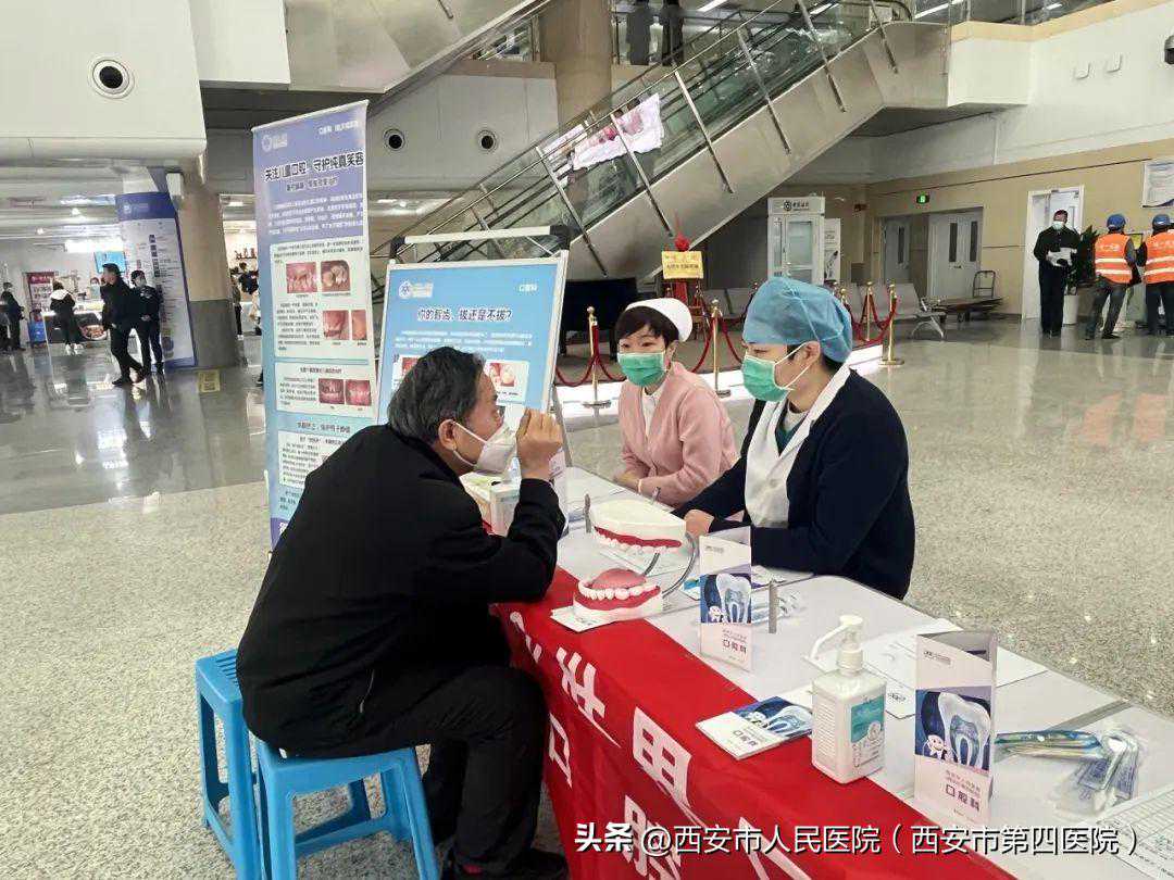 3月20日上午8点,西安市人民医院(西安市第四医院)航天城院区口腔科在门诊一楼大厅设立科普义诊咨询台,开展“世界口腔健康日”义诊活动。