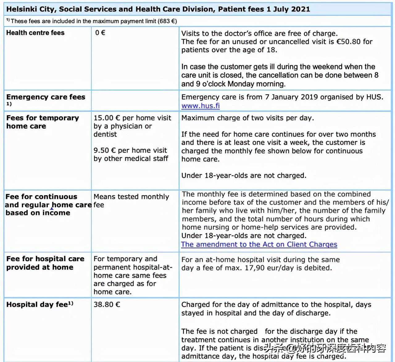 以2021年为例,50欧(折合人民币约360元)以内的药品需要全额自付,超过50欧-579.78欧(折合人民币约4200元)的部分,芬兰社会保障局(Kela)报销部分。超过上限后,剩余部分由国家医保支付,个人只需要每次就诊支付2.5欧元的共付额。但牙科护理的费用并不能计入其中。