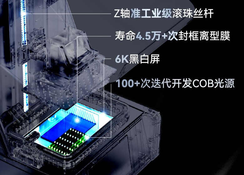 在硬件配置方面,UltraCraftReflex标配了准工业级滚珠丝杆Z轴、6K黑白屏、深度研发的COB光源以及寿命4.5万次以上的封框离型膜等高规格硬件结构。