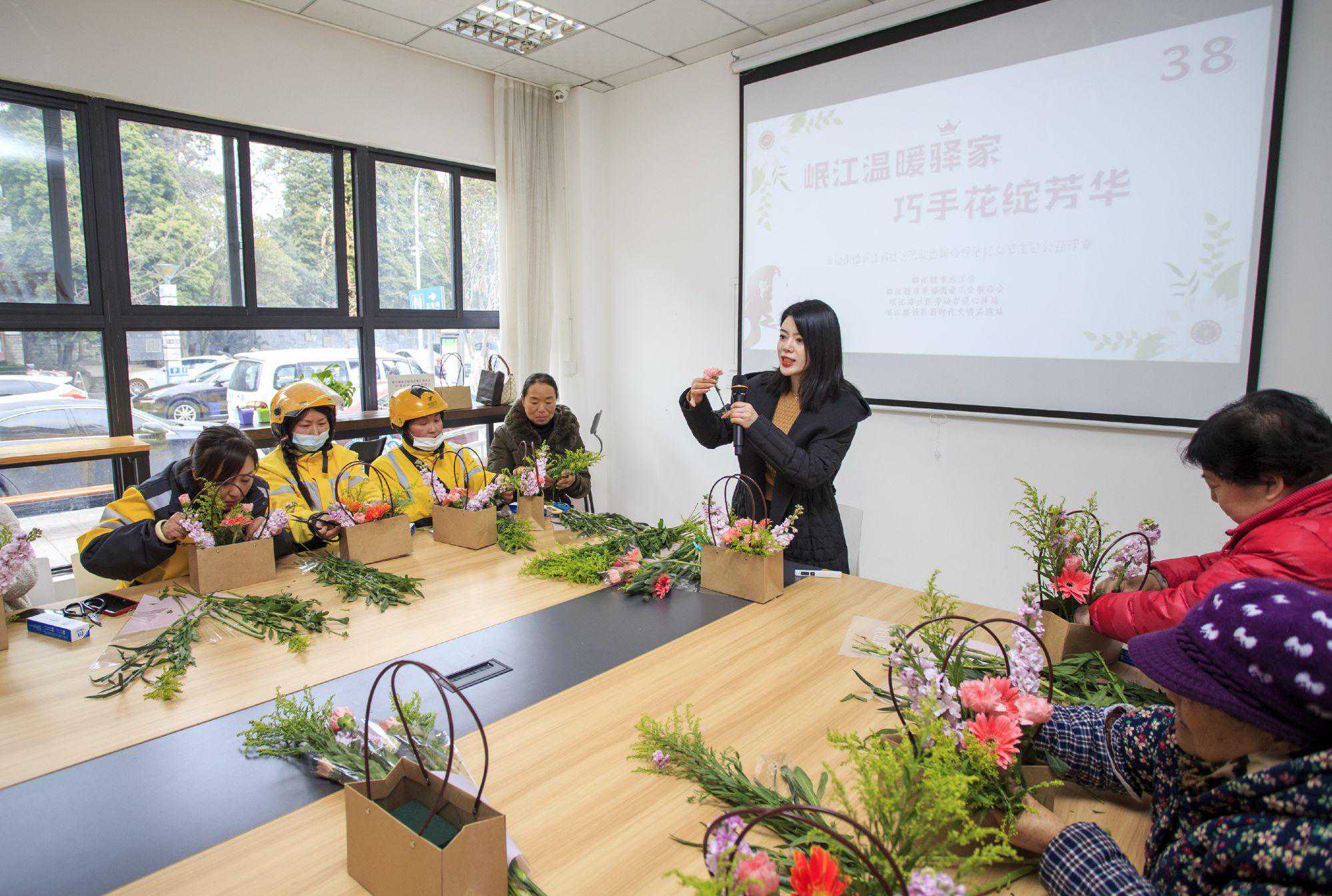 “温暖三月天,春华已开颜。”在国际劳动妇女节即将来临之际。3月7日,由都江堰市总工会、幸福街道工会联合会、岷江路社区联合主办的岷江温暖“驿”家·巧手花绽芳华——三八国际妇女节主题活动在都江堰市幸福街道岷江路社区暖心驿站举行。为坚守在工作岗位上辛苦劳作的户外女性职工送上“娘家人”的温暖与问候。