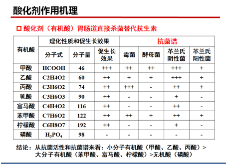 2、酸制剂抑制饲料和胃中的细菌增值,从而起到类似抗生素的促生长、防下痢的效果