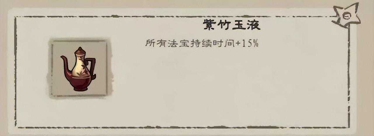 紫竹玉液可增加法宝的持续时间,但缺点是不能契合所有法宝,比如逐月剑或者幽命匕首这类法宝加成效果就不明显,但属性加成的效果还是非常不错的。