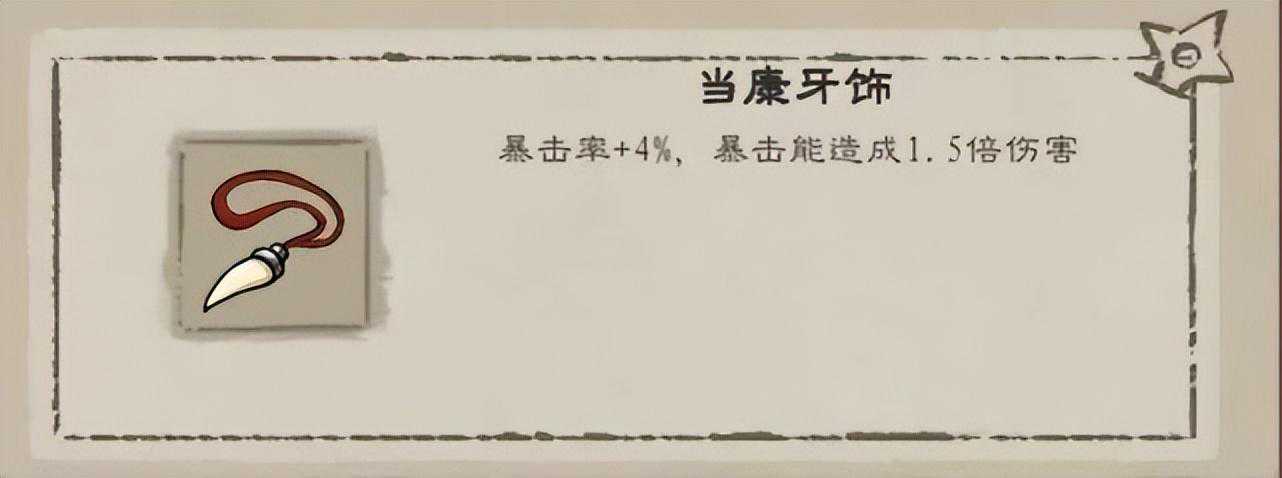 当康牙饰--暴击率+4%,暴击能造成1.5倍伤害