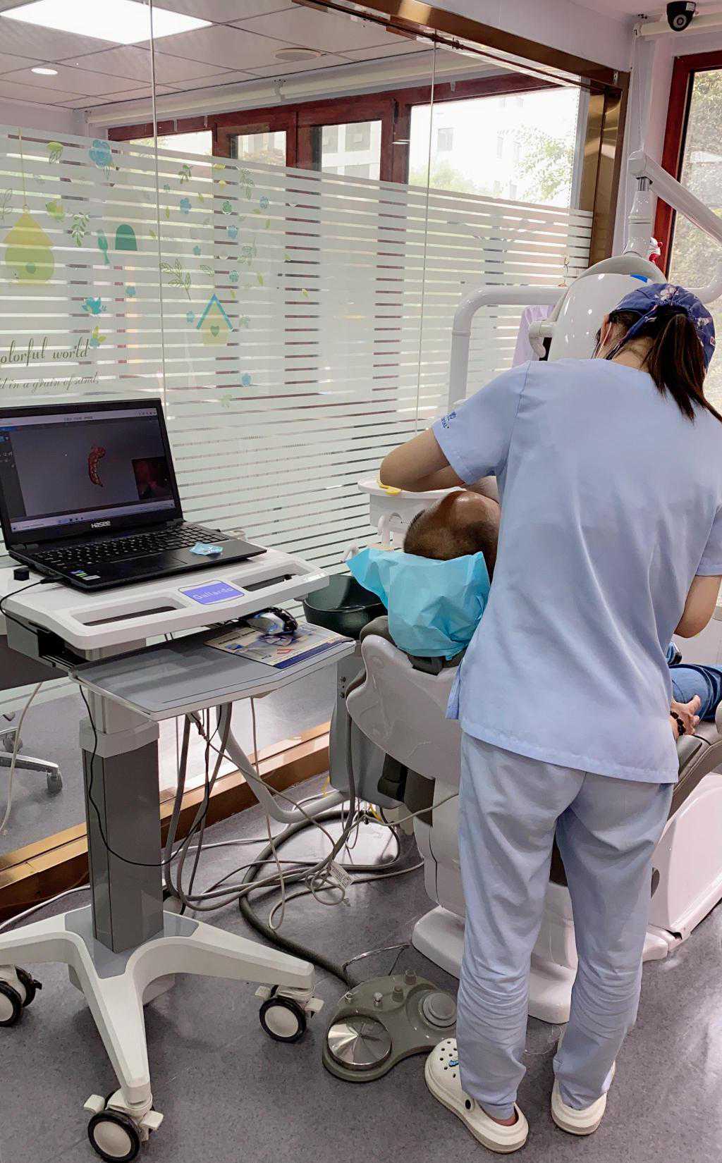 据介绍,在治疗效果方面,过去种植牙时,医生需要切开患者的牙龈黏膜层,放入种植体后再缝合。但通过机器人操作,可以直接在牙龈黏膜层上钻孔至牙床内部,植入种植体,这样的微创手术,术后几乎看不到有手术痕迹,不影响美观。