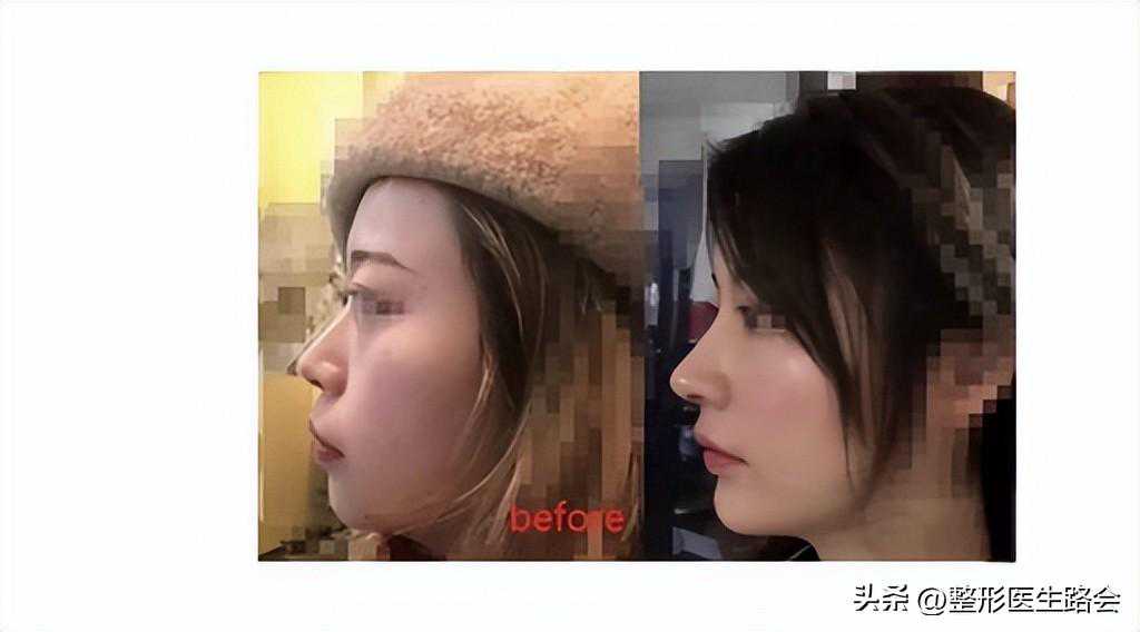 比如下面这位小姐姐,它就是轻微的骨性嘴图,通过垫下巴加垫鼻起底,还垫高了鼻子,视觉上嘴秃的情况就改善了很多。