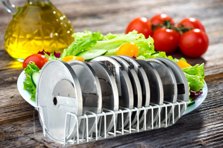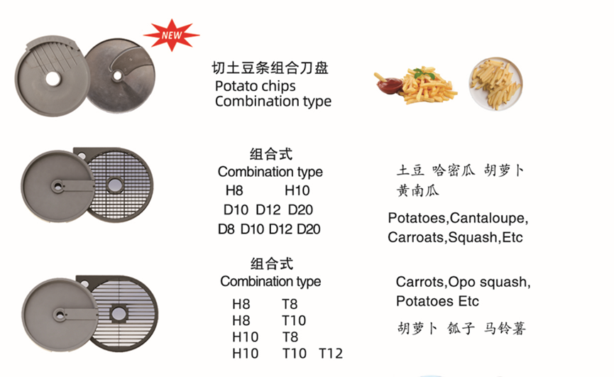 新增加的多款组合式刀盘,搭配使用能有效得切出各种大小粗细的方丝,不论是炒菜用的细丝还是做薯条用的粗丝,都能轻松应对。