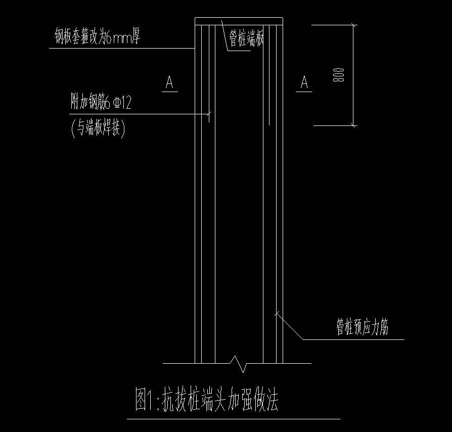 预制桩分为抗拔桩、抗压桩,抗拔桩的桩头需要加强处理。抗压桩的桩头没有加强处理的要求。这是在图纸的上的区分。从外观上区分为如下图:(图一为抗拔桩、图二为抗压桩)