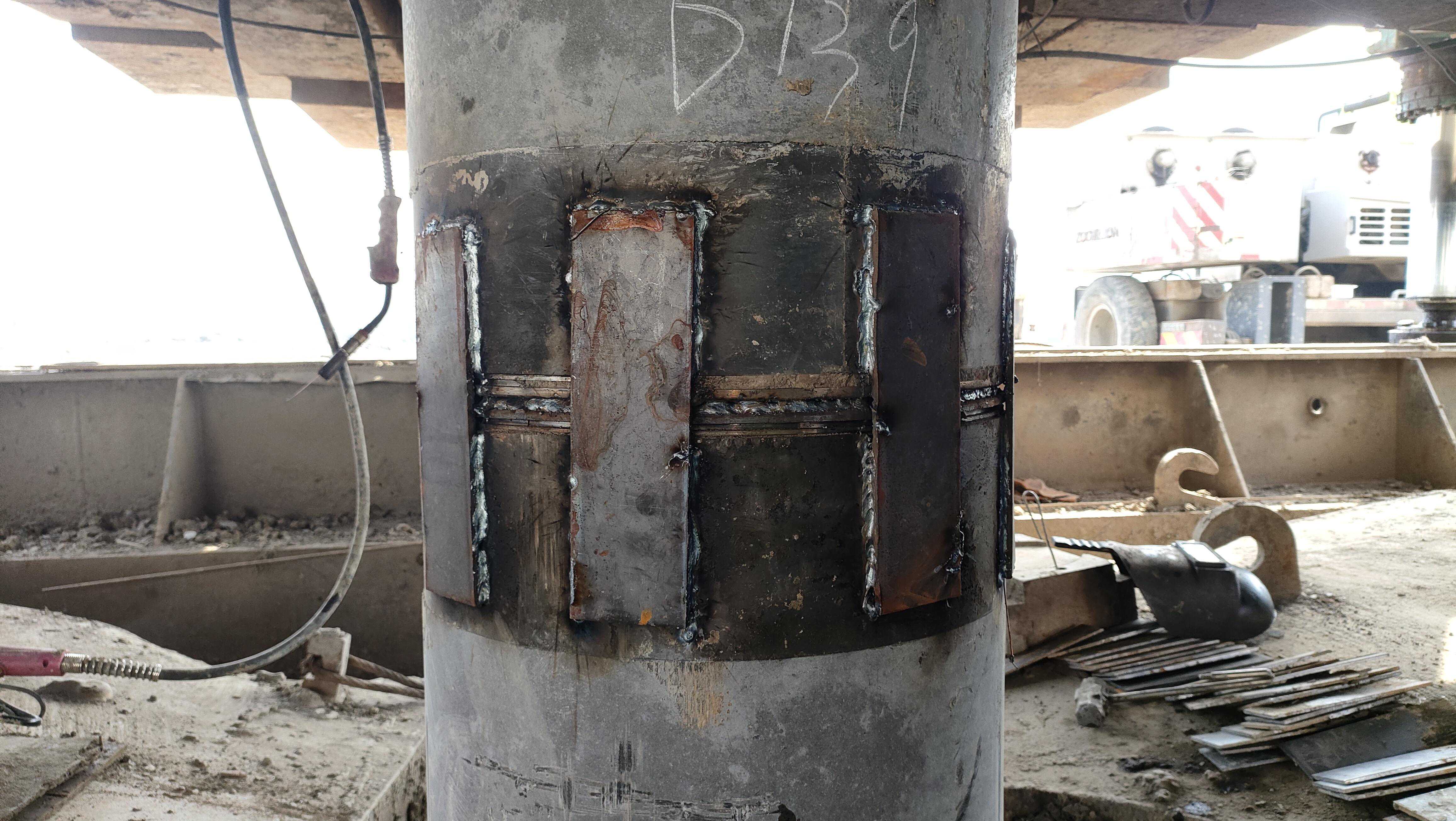抗拔桩桩头的钢板套箍是平的,抗拔桩接桩需要附加连接钢板焊接。而抗压桩就不需要附件连接钢板焊接,只需要接头处水平焊接即可(如下图:抗压桩的接桩连接)
