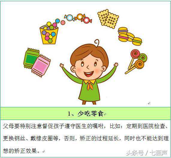 三、牙套矫正靠谱吗?在牙齿矫正的过程中,各位宝妈宝爸可能会怀疑牙套矫正靠谱不靠谱?对孩子有影响吗?【七画声】在这里提醒大家,在孩子戴上牙套后需注意以下几点。