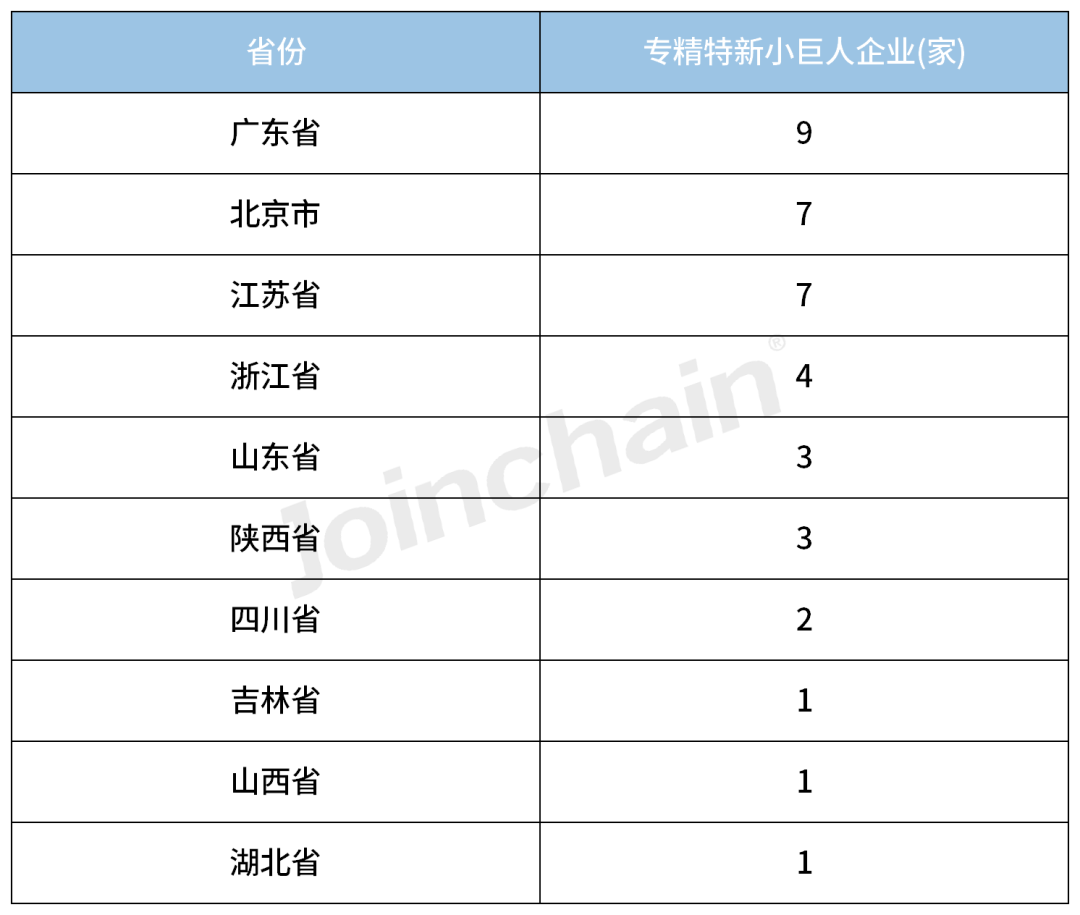 表42023年全国口腔科器械专精特新小巨人企业数量区域分布TOP10