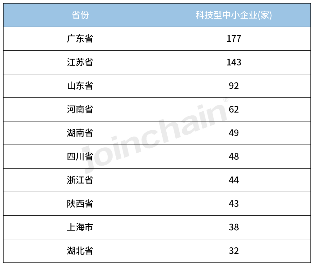 表72023年全国口腔科器械科技型中小企业数量区域分布TOP10