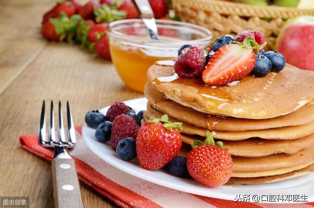 甜食不仅仅局限于糖果,还包括含糖量高的食物,特别是一些甜品等软、粘的食物,这些食物不仅很容易附着在牙齿的表面,而且是细菌最好的营养餐,引起细菌菌群的沉积和大量繁殖,从而导致蛀牙的发生。