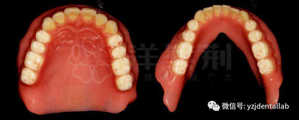 1)蜡牙试戴调整合适后,充胶完成最终修复体。