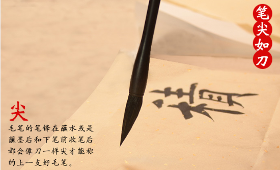 传统而言,好毛笔要合乎圆健齐尖四个标准,号称“毛笔四德”,就像君子有“仁义礼智”四德一样。
