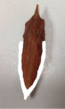 前面说了头、二、三锋的制作用料和工序,如果不道德、不诚实的话,笔柱采用无锋颖的毫毛、等外毛或用黄蔴杂毛用刀削成笔柱、笔尖,然后采用较好的毛做披毛将笔柱遮盖得完整,再用牛胶粘得紧紧的,看外观圆圆的、白白的、尖尖的,其实里面没有好材质,这样进入市场卖好价钱,这种做法是不道德的。(见图二)