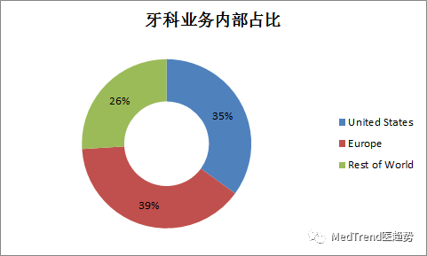 欧洲是登士柏西诺德最大的市场,占集团业务总营收的39%。其次是美国市场占35%;