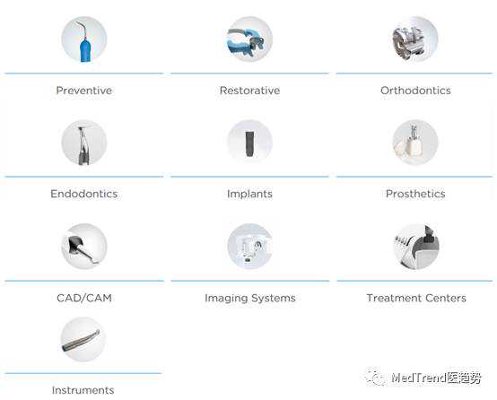 技术产品主要有牙科植入物、CAD/CAM系统、成像系统、治疗中心和正畸产品
