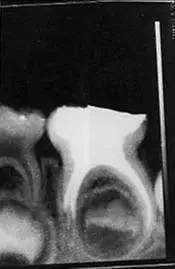 2.拍片了解根尖周病变,牙根吸收情况和恒牙胚和牙囊有无受累;