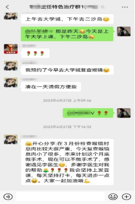在李云英主任、陈文勇主任的带领指导下,该班学员通过跟师国内著名嗓音专家梅祥胜教授,参加北京、上海、广州的各大嗓音学习班,实现了中西医结合,逐渐摸索出对咽喉嗓音病行之有效的特色嗓音矫治方法。