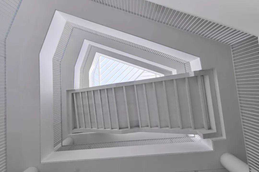 中学的课程安排通常是紧密的,对于学生和老师来说,空间的高效性与他们息息相关,在短短的10分钟下课时间内,他们需要短暂休息和为下一堂课做准备。为实现高效的转课路线,外环教室之间采用连续清晰的交通流线,内环教室的路线则相对自由模糊,使得高效与趣味在空间行走中切换自如。