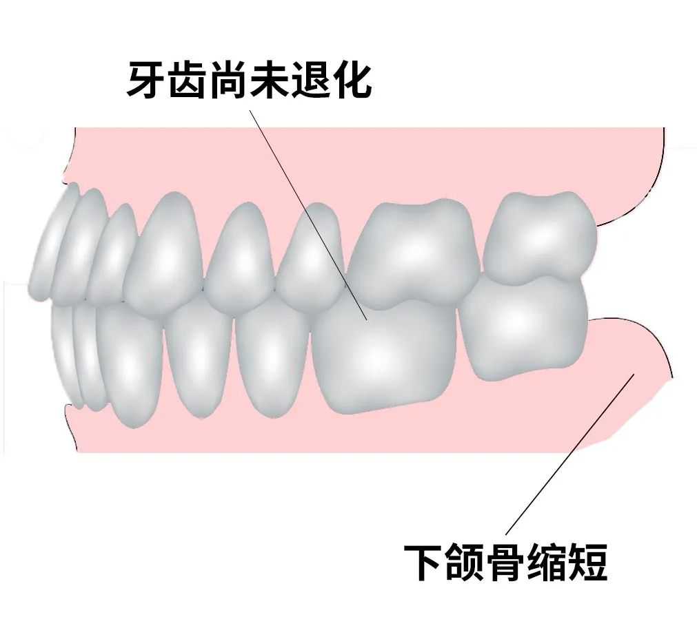 从古至今,人类生活环境在逐渐发生改变,食物从生到熟,由粗到细,由硬到软,牙齿的咀嚼功能也日益退化减弱,颌骨也逐渐缩小。