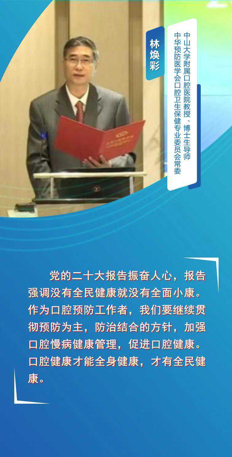 党的二十大报告振奋人心,浓墨重彩总结新时代十年的伟大变革。作为口腔预防工作者,我们要在继续做好疫情防控的基础上,思考如何在口腔公共卫生方面提更多更好的建议,做更多具体的工作,促进人民群众口腔健康水平的提升,更好地推进健康中国的建设。同时在科技强国方面,也可以发挥专委会专家及所依托高校的优势,加强科技成果转化,更好地服务社会,服务广大人民群众。