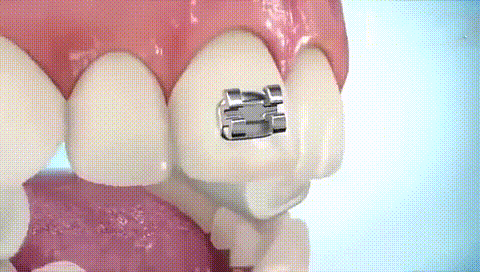 最后一步,用弓丝挨个穿过这些固定的托槽,再通过闭锁装置或结扎钢丝将弓丝与托槽牢牢锁定在一起,这样一副完美的牙套就大功告成啦!