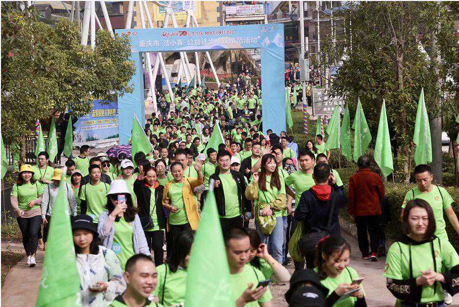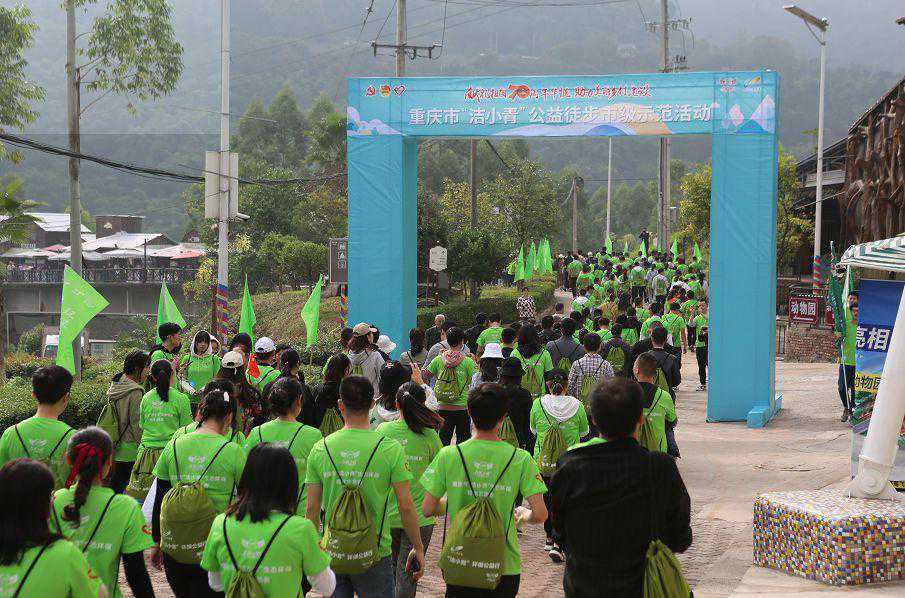10月19日上午9点,由重庆市生态环境局、市城市管理局、市农业农村委、团市委主办,涪陵区委宣传部、区文明办、区教委、区生态环境局、区城市管理局、区农业农村委、团区委、蔺市镇政府承办的献礼祖国70周年华诞助力美丽乡村建设——重庆市“洁小青”公益徒步活动在美心红酒小镇正式拉开序幕。