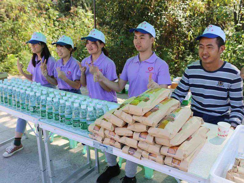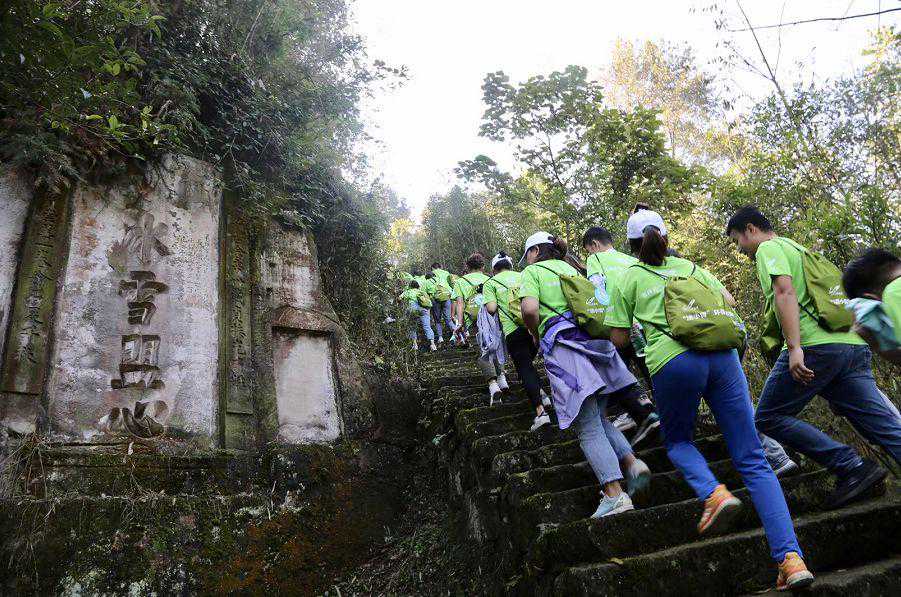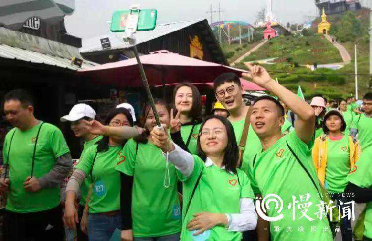 志愿者在徒步中合影留念