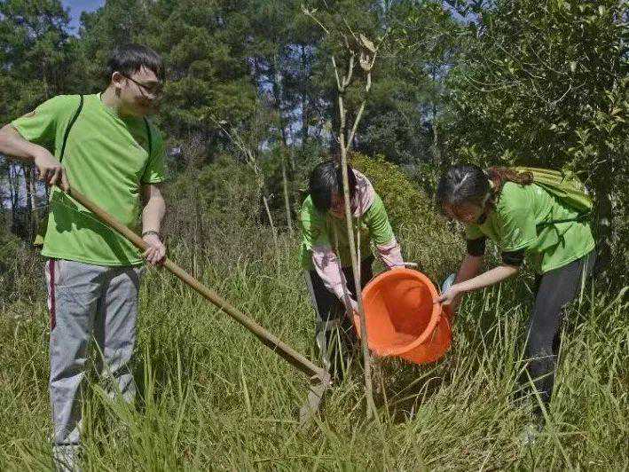 他们沿途捡拾垃圾、参与种树……