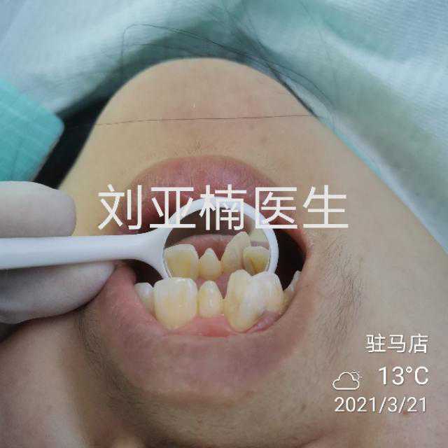 今天遇见一位23岁患者牙齿就是照片所示。患者来了主诉就是有一多生牙问问能不能拔除。我一看是成年人,以为是埋伏牙(在粘膜或者牙槽骨内称之)。躺在牙椅上开始检查,一张嘴有点吃惊,吃惊的是这颗多生牙就在上门牙中间,一颦一笑都能露出,这么明显的问题直到成年还没有解决,看来患者对美观要求不高哈������������������