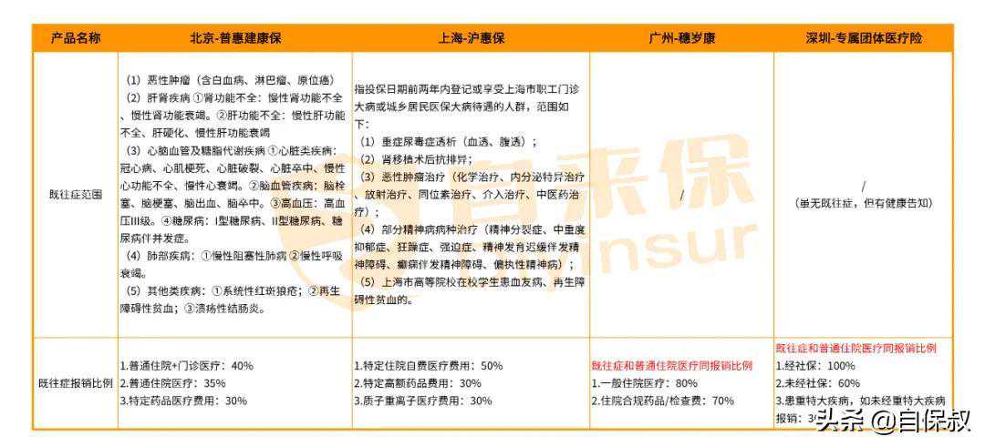 这里尤其要夸夸广州的穗岁康,既往症不但可以投保,而且报销比例还跟健康人群一样!简直是既往症人群的福音!