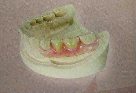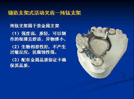 缺牙比较多,可以选择这种铸造钢托的可摘活动义齿,价格低廉,容易清洗。