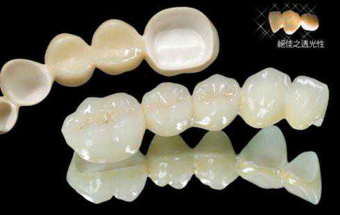 世界上唯一一款计算机辅助设计全自动机械切削氧化锆全瓷牙,专门设计用于前颚的前臼齿具有无与伦比的透光性与强度,可以实现最佳的美学效果,可使用传统粘合方法;缺点是目前费用较高。