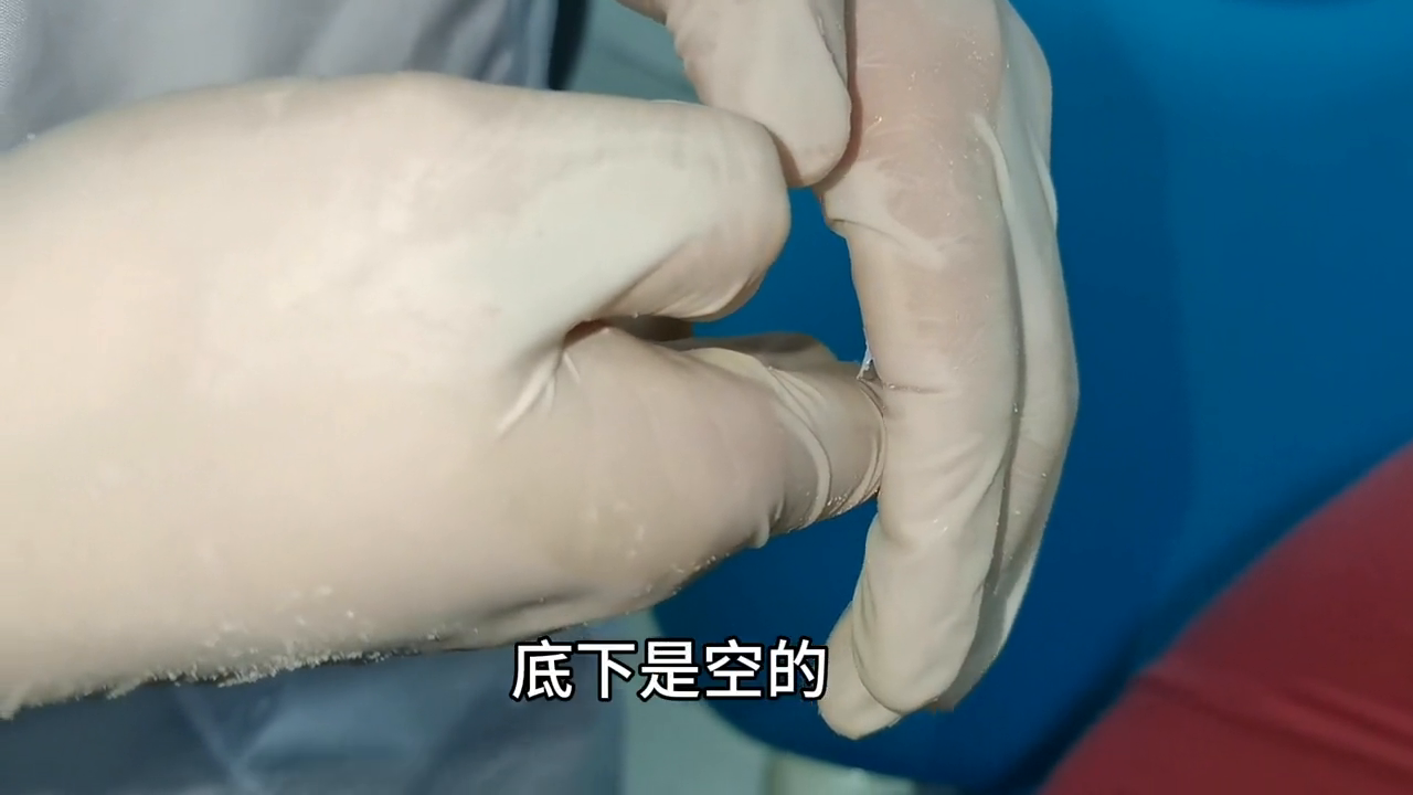 扣进去以后,光滑面会磨掉一部分,这里磨成凹面形,这里就有一个这样子弧形,相当于我这手拱着进去的,大家能理解。这样拱着进去,这个是内骨嵴(内斜线),这样子扣进去,扣到里面,先扣住了。
