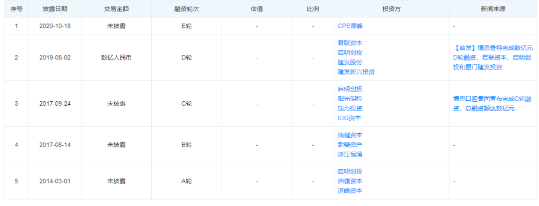 截至2020年底,公司融资已经到达E轮,公开披露的C轮、D轮都在数亿元之多,目前博恩集团现有八家子公司,全国员工人数近1000人,每年实现超过50%的成长,服务于全世界40多个国家的牙医和诊所。在口腔设备与耗材方面,博恩登特先后成为德国VDW、意大利斯美、意大利优尼威等品牌产品总代理或战略合作伙伴,产品同时包括根管系统、牙科综合治疗台、影像设备,显微镜、放大镜、激光等。