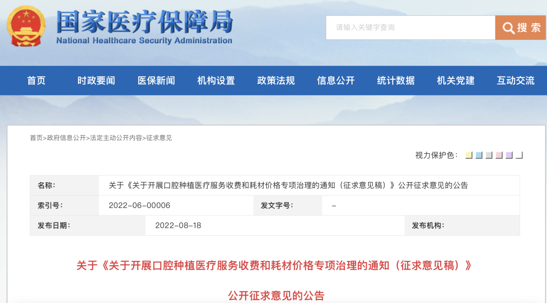 近日,国家医保局办公室发布《关于开展口腔种植收费和医疗服务价格调查登记工作的通知》(以下简称“通知”)。通知表示,为贯彻落实九部委《关于印发2022年纠正医药购销领域和医疗服务中不正之风工作要点的通知》要求,配合口腔种植医疗服务和耗材收费专项治理,为后续实施种植体集中带量采购、规范口腔种植医疗服务价格项目和收费等工作奠定坚实基础,决定全面开展口腔种植收费和医疗服务价格调查登记工作。