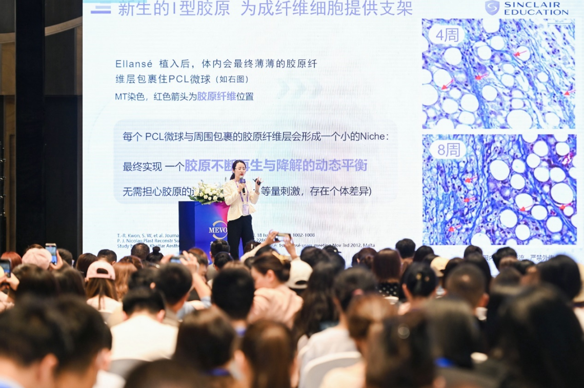 针对Ellansé伊妍仕激活胶原新生的原理,南京华美美容医院院长吴文欢分享到:“PCL材料可以自然代谢,且因为每个PCL微球与周围包裹的胶原纤维层会形成一个小的Niche,最终实现一个胶原不断再生与降解的动态平衡。”