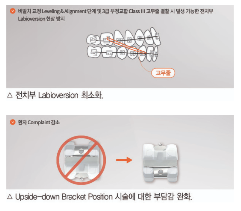 또한Active타입의자가결찰LowTorque브라켓으로Clip의두께가0.14T로견고하여교정치료완료시까지Clip의탄성력이유지되어Torque소실없이치아이동이가능하다는의견을개발및평가단계에서다수의교정전문의에게받아임상에서의유효성도확인되었다.